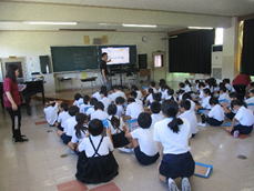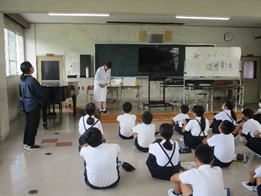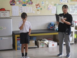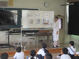朝の時間、1年生の教室では保健室の先生が子ども達に歯磨き指導をしていました。食べることや歯磨きの大切さを伝えながら、よい歯磨きの方法をわかりやすく話されました。子ども達もしっかりと話を聴いていました。