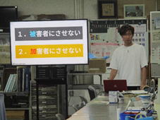 後半はSNSの問題を中心に据えた情報モラルの研修会を行いました。講師はITコンサルタントの方で、パソコン教室の講師などもされている渡邉さんです。最近の子ども達のスマホやゲームにおける影の部分にスポットを当て、より具体的なお話を聴くことができました。特に子ども達が知らずに使用しているアプリなどで位置情報などが特定される危険性があるものなども教えていただきました。最後にスマホやゲームで家庭でのルールを作るなら「使用する時間」「使用する場所」を決めておく必要があると言われました。短い時間でしたが、先生方は研修を深めることができました。