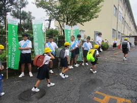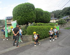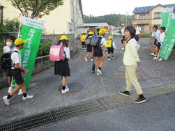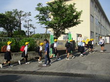 今日は入学したばかりの1年生が、登校班で集団登校する初日です。先生方も朝から、遠い地区から歩いてくる子ども達の班について行きました。途中で見守り隊や保護者の方々も、交差点や横断歩道などで立哨していただいていました。登校班の班長さんもしっかりと1年生の歩くペースに合わしてくれて、全員無事にけがもなく、安全に登校することができました。