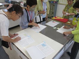 ※おはよう計算プロジェクトに参加していただいた地域の方へ、吏員の先生が手作りの紫陽花(折り紙)カードをプレゼント。とても喜んでいただきました。