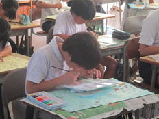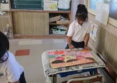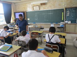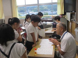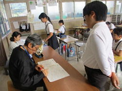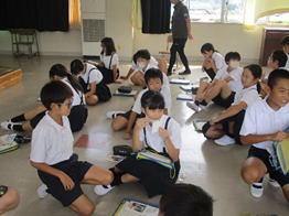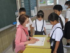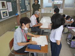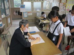 午後からは3名の地域の方が3年生の初めての書道の時間を支援していただきました。子ども達のそばに行って道具の確認や置き方や使い方などを優しく教えていただきました。