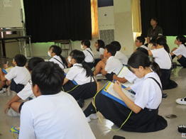 今日の午後、薬剤師の方をお招きして音楽室で「薬物乱用防止教室」を行いました。お話や映像で薬物依存の怖さや身体への影響など、様々な角度から伝えていただき、最後はシンナーで発泡スチロールが溶ける実験を見ました。