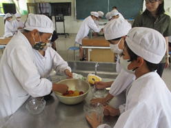今日の6時間目は、久しぶりのクラブ活動でした。特に運動クラブはグラウンドでキックベースボールをやっていて、大盛り上がりでした。家庭科クラブは、家庭科室で甘い香りをいっぱいにして、冷凍フルーツを氷水に入れてパリパリ触感が味わえるデザートの「タンフル」を班で協力して作っていました。チャレンジクラブは割れないシャボン玉づくり、室内あそびクラブはカードゲーム、図工クラブは牛乳パックを使って工作、コンピュータクラブは来年の干支(午年)のカレンダーづくりなどそれぞれのクラブで充実した時間を過ごしました。
