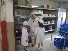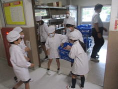 今日は朝から雨が降り、業間時間を室内で過ごした子ども達。4校時が終わり、給食準備。各学年の給食当番の子ども達がきちんと並んで給食室へ。それぞれの役割で、食缶や食器、牛乳を持っていきます。重たいので、先生や吏員の先生、給食委員会の児童に手助けしてもらいます。その時にしっかりと「ありがとうございます。」と言って、受け渡してもらっています。その光景を見るたびに、感じのいいあいさつと気持ちいい活動しているな~と感心しています。
