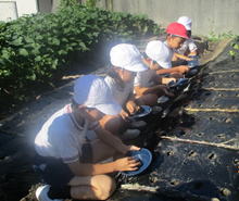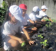 今日の1校時、地域の方と一緒に2年生が野菜の苗植えを行いました。今回は大根、ホウレンソウ、べんり菜、カブ、ニンジン、春菊、白菜などに挑戦です。今日の苗を植えるために事前準備などを地域の方がされ、植え方をやさしく教えてくださり、それに応えるように子ども達も苗を丁寧に植えていきます。直接、手で土を触った感触を大切にしながら、地域の方から教えてもらったことを忘れず、これからも野菜や花を大事に育てられる人になってほしいと思います。