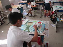 朝は少しずつ秋らしい気温となってきました。読書の秋!芸術の秋です!と、言わんばかりに子ども達はがんばって読書感想画の制作に熱が入っています。画面の中の構成を考えて、登場人物の表情や背景のこだわりなど、本を読んで感じたことを絵で表現しています。丁寧に絵の具で着色しながら、画用紙に向かっている子ども達の姿を見ると「芸術の秋だな~」と感じるこの頃でした。