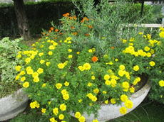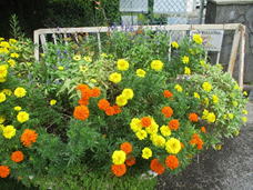 (マリーゴールド・メランポジウム・コスモス・ブルーサルビア・ケイトウ)