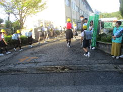 民生委員さんとのあいさつ運動と運動会リレー選手の練習