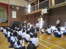 家庭訪問期間も最終日となり、13時の一斉下校時に体育館に集合して、連休前の生活について交通担当と生徒指導担当から話をしました。安心・安全に過ごして、自分の命は自分で守る行動をとることなど内容を子ども達はしっかりと聞いていました。けがや事故がなく、楽しい連休にしてほしいと思います。