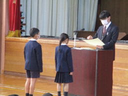 午後からは体育館で表彰式を行いました。前期後半から後期前半までに、運動や文化面で多くの表彰を受ける子ども達はとても多くて、本当に喜ばしいことです。賞状を渡す時に、嬉しそうに満面の笑みを浮かべる子ども達がとても印象的でした。これからも、いろいろな力を発揮している三井っ子のがんばりを讃えたいと思います。表彰されたみなさん、おめでとうございます。