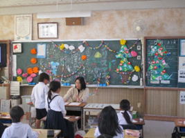 今日の5校時、6年生は図書室の先生を含めた4名のお話会の方が、絵本の読み聞かせ等をしていただきました。最初のお話は「12つきのものがたり」でお話の語りをされ、大型絵本や指あそび「クリスマス手遊び」などでお話会の方と一緒に指あそびをしました。紙芝居「おしょうがつのおきゃくさま」やエプロンのお話「かさじぞう」など、お話をされる方の表情を見ながら、物語の中に入り込んで楽しい時間を過ごしていました。