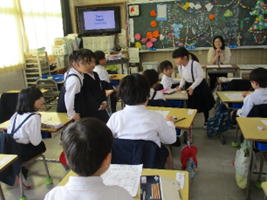 ※校長室でのミッションは、校長先生の名前を2年生が1年生に教えてあげて、校長先生と握手するという内容でした。とても元気で笑顔いっぱいの1年生と2年生に握手できて、とてもうれしかったです。校長室に、また遊びにおいでね!