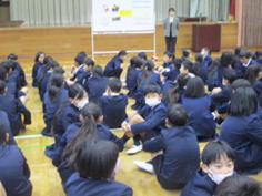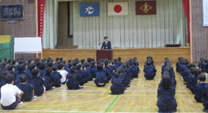 今日は朝から体育館で全校集会を行いました。誓いを立てたら、それをやり抜く意味の四字熟語「初志貫徹(しょしかんてつ)」という言葉を伝え、いろいろな失敗があっても反省してやり直し、決めたことを実行する大切さを話しました。全校児童で校歌を大きな声で歌った後、生徒指導担当から冬休みの生活について話があり「冬休みのいろいろな誘惑に負けないようにしよう。」「インターネット、ゲームの使用は夜の8時までにしよう。」と伝えました。全校集会後は地区別児童会で交通安全のことや、危険個所、登校班についての振り返りを行いました。後期後半も安全で充実した学校生活を送ってほしいと思います。