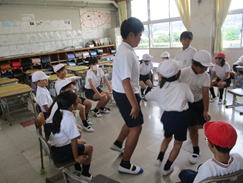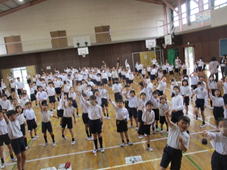 今日の2校時にたてわり班活動で1年生と全校児童が仲良くなるために、運営委員会の子どもたちが企画した「にこにこ仲良し集会」が体育館でありました。1年生から6年生のたてわり班でグループになり、1年生の自己紹介や先生とのじゃんけん大会、班対抗あたまおしりゲームなどで盛り上がりました。最後にたてわり班での目標を決めて、1年生からお礼の言葉。全校児童で1年生には「よろしくの拍手」、運営委員と6年生、登校班の班長の子ども達には「ありがとうの拍手」を贈りました。
