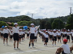 今日の3校時に全体練習を行いました。暑い中、子ども達は担当の先生の話をしっかりと聞き、整列、回れ右、駆け足で移動などを行いました。まだまだ全体の動きが分かっていませんが、一人ひとりががんばろうとしている姿勢が見られて、とても気持ちよかったです。代表児童も気持ちが入っていて、真剣さが伝わってきました。担当の先生も「気をつけの姿勢がとてもいいですね!すばらしいです。」と褒めていました。まだまだこれから、暑くなりそうですが、三井っ子全員のパワーで運動会を成功させてほしいと思います。